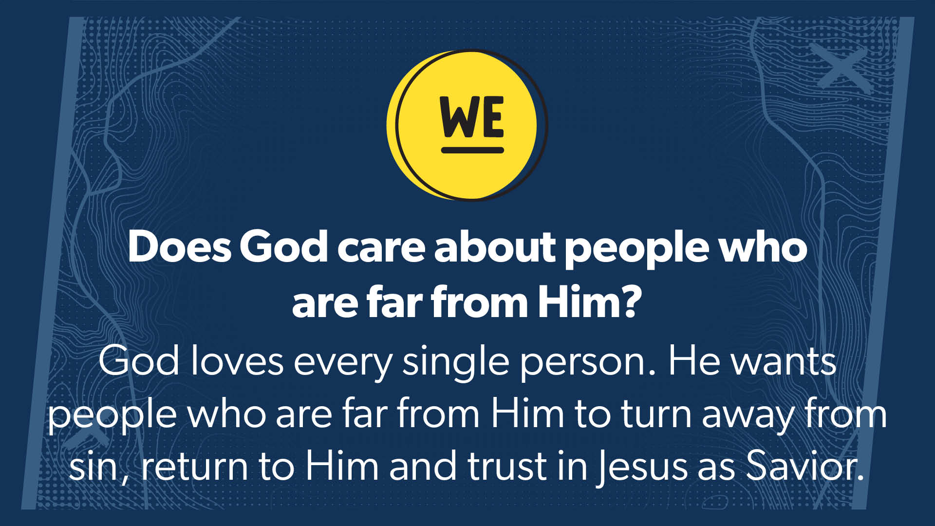 This parable is a beautiful picture of Jesus’ love for us. We, like the younger son, tend to do things our own way. We walk away from God and His ways, thinking our way is best or more fun. When we choose our way instead of God’s way, that is sin. Sin separates us from God. But like the father in the story, God is patiently and lovingly waiting for us to change our minds, turn away from our sin and return to him. This is called repentance, or turning away from sin and turning back to Him. He never gives up on us. He loves us, even when we are far from Him, and because Jesus took the punishment for our sin, He welcomes us home again.